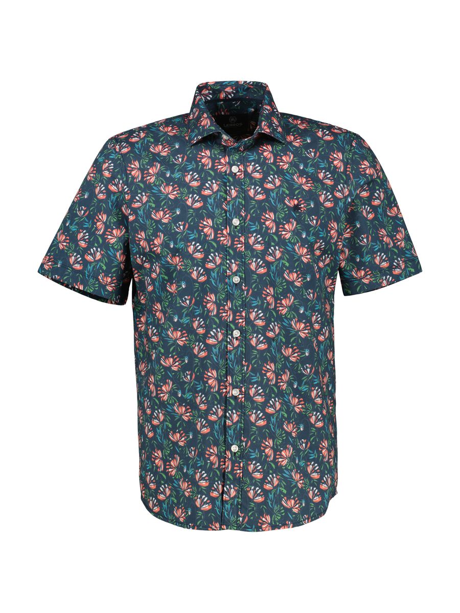 Halbarmhemd für Herren von LERROS mit sportivem Haifischkragen. Das Freizeithemd besticht durch sein florales Muster und die bequeme Schnittführung mit Stretchanteil (REGULAR FIT). Die hochwertige Poplin-Baumwollqualität verleiht dem Kurzarmhemd nicht nur eine lässige Optik, sondern trägt ebenso zum bequemen Tragekomfort bei.