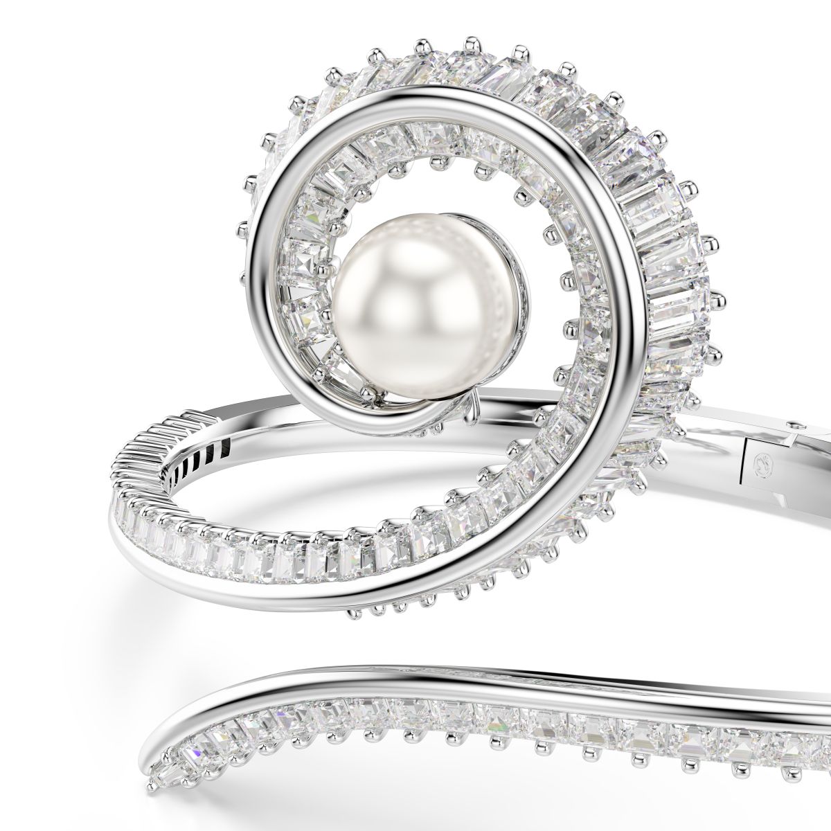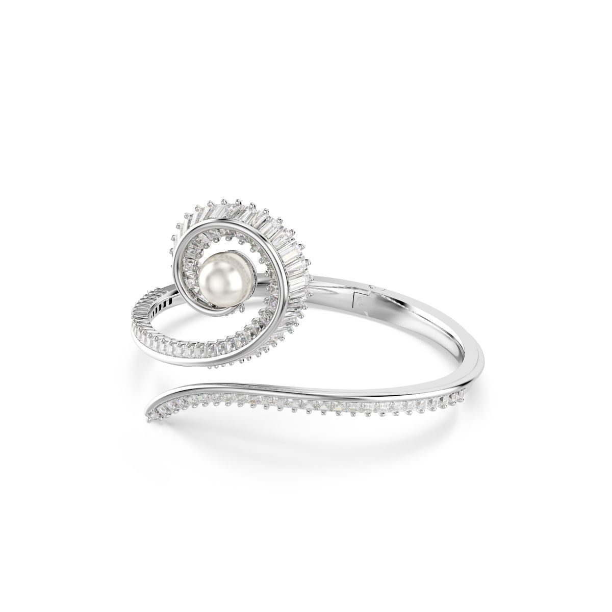 Beschreibung: Dieser von der Musik inspirierte Armreif vereint Eleganz mit Kreativität. Das rhodinierte Design in der abstrakten Form eines Violinschlüssels ist wunderschön geschwungen und mit Swarovski Zirconia im Baguette-Schliff besetzt. Für einen zusätzlichen Hauch von Luxus schimmert in der Mitte eine einzelne Swarovski Kristallperle. Dies ist die perfekte Möglichkeit, Ihrem Stil eine beschwingte und rhythmische Note zu verleihen.; Familie: SS25 Capsule; Max. Länge: 16,7 cm; Effektive Länge: 167,2 mm
