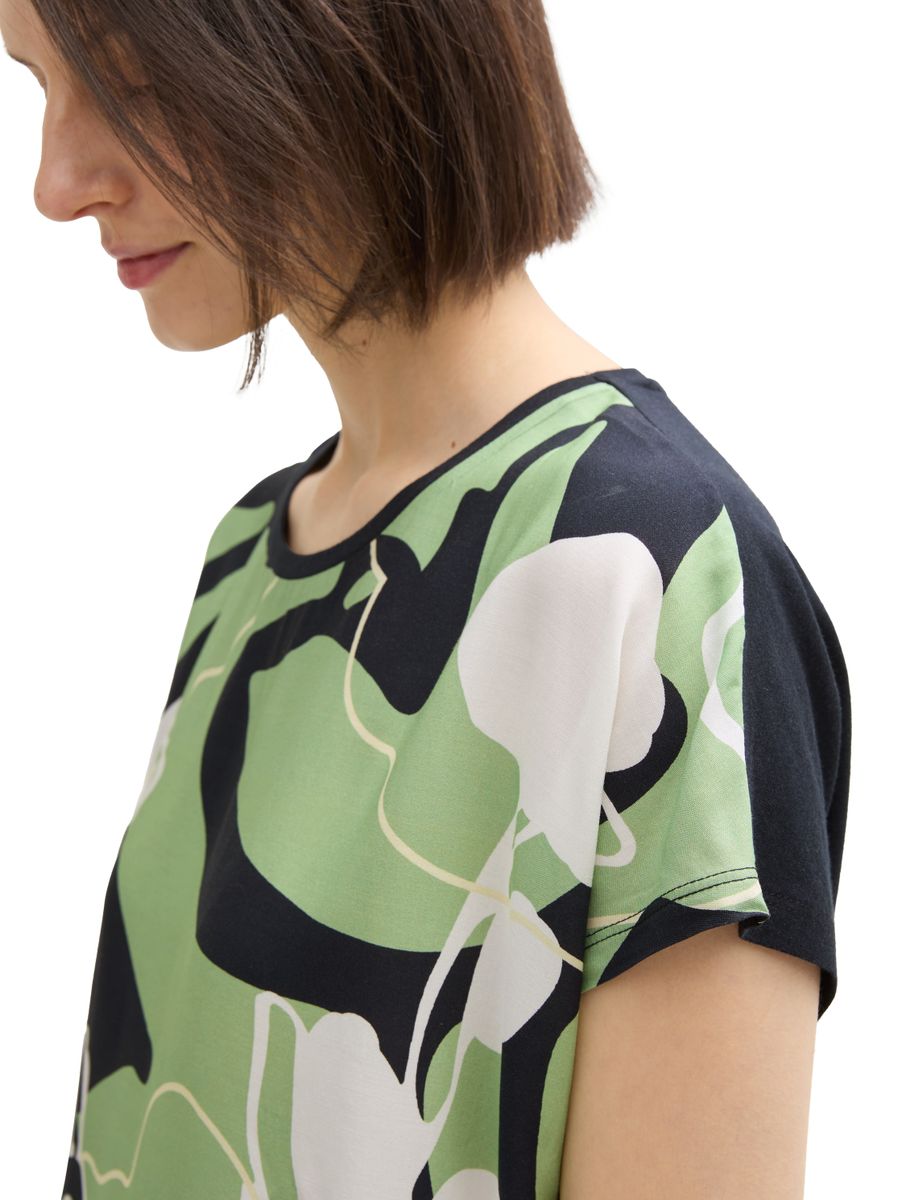 * T-Shirt im Material-Mix mit Print auf der Vorderseite und kleinen Seitenschlitzen