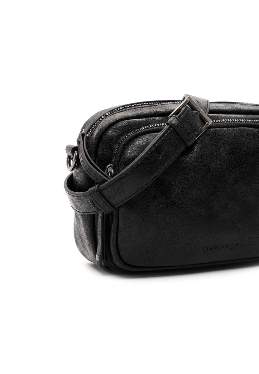 "Frey" und selbstbewusst - SURI FREY Eine Handtasche zeigt die Persönlichkeit einer Frau. Ob hundertpro geordnet oder leicht chaotisch - Frauen lieben sie einfach! Die Umhängetasche SFY Ivory kommt in glatter Optik mit Logo-Prägung und sieht einfach toll aus. Sie ist ein lässiges Statement für den Alltag. Eine Umhängetasche auf die man zählen kann. Die Marke SURI FREY bietet tierfreundliche Styles und Designs an, die ausnahmslos aus veganen Inhaltsstoffen bestehen. Dafür steht zudem das durch die PETA verliehene Logo „PETA-Approved Vegan“, welches beste Standards bei der Fertigung ohne tierische Inhaltsstoffe auszeichnet. Das Modell besteht aus Feinsynthetik und lässt sich mit einem Reißverschluss verschließen. Die glatte Optik und das Uni-Design sind fein gearbeitet und verleihen der Umhängetasche einen edlen Look. Wer viel draußen ist, will einfach immer gut aussehen. SURI FREY hat genau die Accessoires, die so gut gefallen und die jedes Outfit mit Stil vervollständigen. Die Umhängetasche hat ein übersichtliches Hauptfach. Ein Reißverschluss-Fach auf der Rückseite schafft zusätzlichen Stauraum und ermöglicht den schnellen Zugang zu Dingen, die man immer parat haben möchte. Das Modell SFY Ivory ist von der Haptik eher weich und daher besonders angenehm zu tragen. Eine Logo-Prägung schmückt optisch und hebt das ausgefallene Design dieses neuen Favoriten hervor. Dieser neue Lieblingsbegleiter wird dank längenverstellbarem Umhängeriemen einfach und bequem über der Schulter getragen.