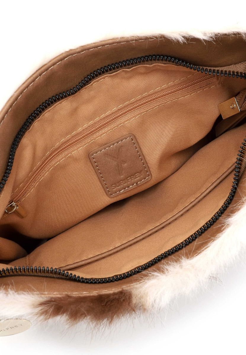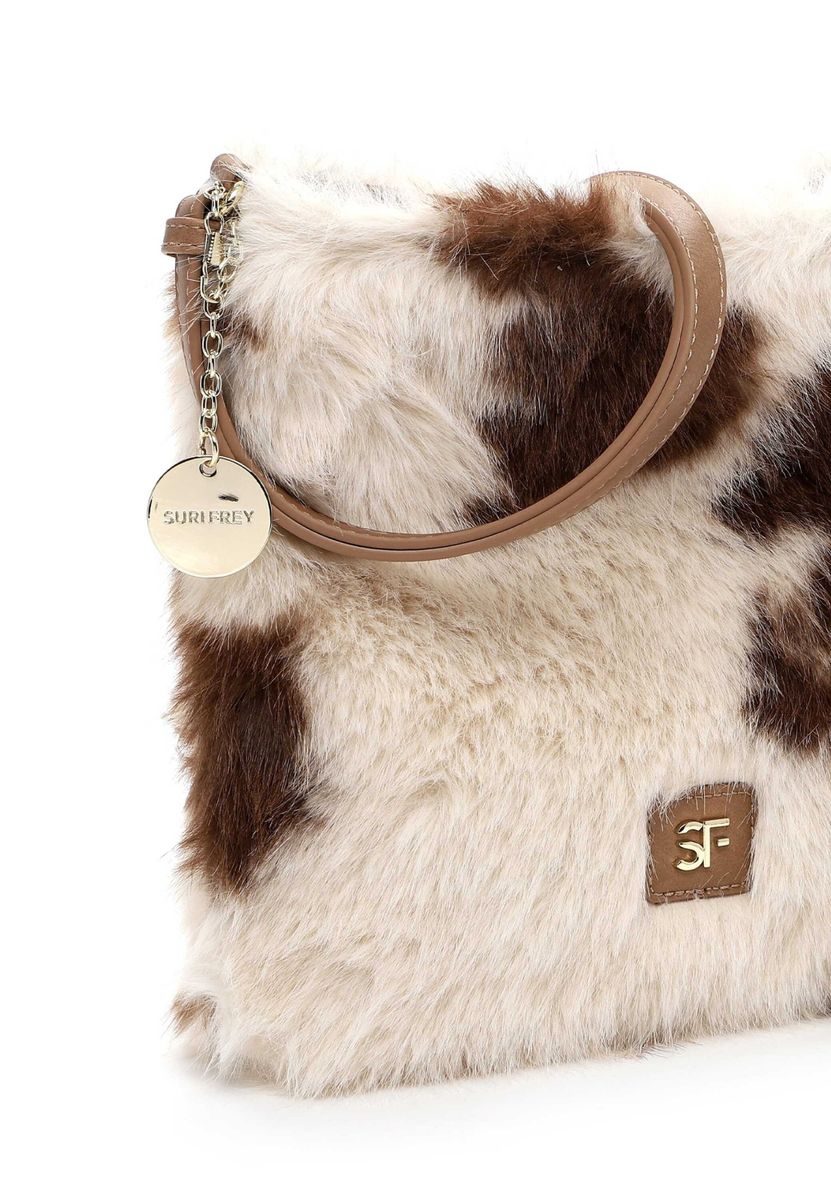 Individuelle Persönlichkeit zeigen - mit SURI FREY Eine Handtasche zeigt die Persönlichkeit einer Frau. Ob hundertpro geordnet oder etwas chaotisch - sie wird einfach heißgeliebt! Die Umhängetasche SFY Misty kommt in Kunstpelz-Optik mit Reißverschluss und sieht einfach gut aus. Ob für Office, Uni oder in der freien Zeit - mit ihr lässt sich einfach jedes Abenteuer bestreiten. Gefertigt ist das Modell, das sich mit einem Reißverschluss verschließen lässt, aus Feinsynthetik. Durch das Material ist es angenehm im Griff. Ein optisches Highlight ist die Umhängetasche mit Kunstpelz-Optik und dem Animal-Design. SURI FREY kennt die Wünsche ihrer Bewunderer genau und sie weiß, was sie verbindet - Lebensfreude und Freundschaft. Und genau das spiegeln die Produkte des angesagten Modelabels wider. Die Umhängetasche hat ein übersichtliches Hauptfach. Für alle, die eine weiche Haptik lieben - SFY Misty ist angenehm anschmiegsam. Für das süße Extra sorgt die Applikation mit dem Logo-Patch, die direkt ins Auge fällt. Mit wird der neue Lieblingsbegleiter ganz entspannt als Umhängetasche getragen. Mit der mittelgroßen Umhängetasche lassen sich Haustürschlüssel, Portemonnaie, Handy und Co. problemlos transportieren.