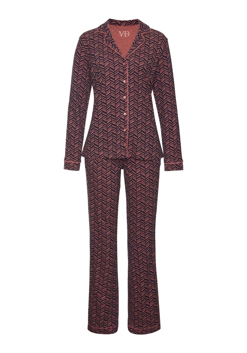 vivance dreams Klassisch geschnittener Pyjama von Vivance Dreams mit Allovermuster. Langarmshirt mit Reverskragen und Knopfleiste. Hose mit elastischem Tunnelzugbund und Eingrifftaschen. Weicher Single-Jersey.